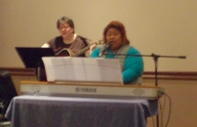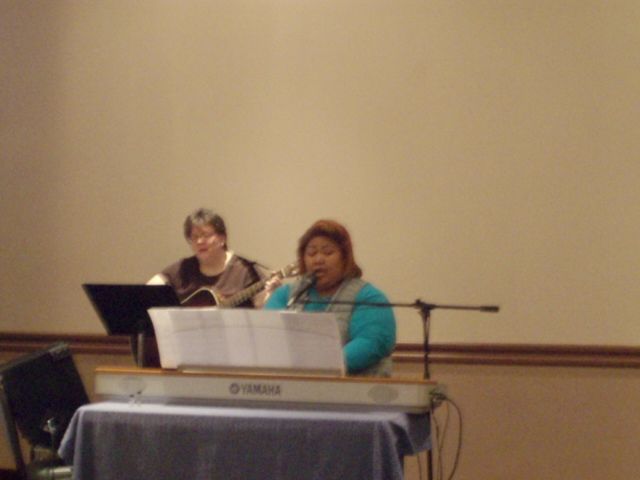 Pictured here are some more of our worship team: Mike and Tina Hook + Tim Stogsdill. Not shown in any of my photos is my husband, Joe. (It is very fine with him not to be seen in the photo’s). He was our bass player for the week-end and our electronic “techie.” Do not know what we would do without him! He is God’s gift to all of us.